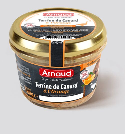 Különleges kacsa terrine, amely narancs hozzáadásával, finoman fűszerezve készül. 180 g-os kiszerelésben érhető el, így ideális éttermek és delikáteszek számára is.
